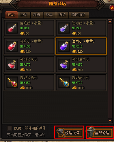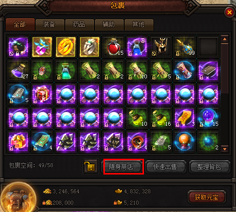 当界面右侧并未出现修理图标但玩家需要修理装备时,可打开背包,快捷键B,选择【随身商店】按钮即可弹出装备修理界面。