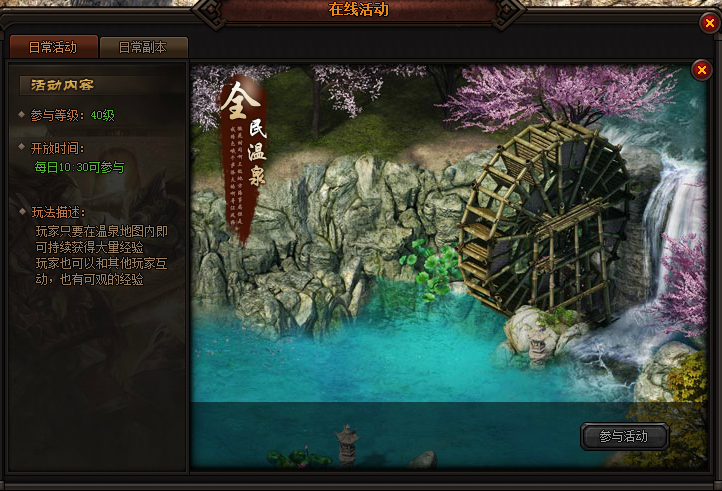 玩家的宠物是不能进入温泉地图的——相信所有玩家都不想与兽共舞的——在温泉地图中不能使用所有技能!进入后,所有装备都会隐藏,轻罗小扇白兰花,纤腰玉带舞天纱——!