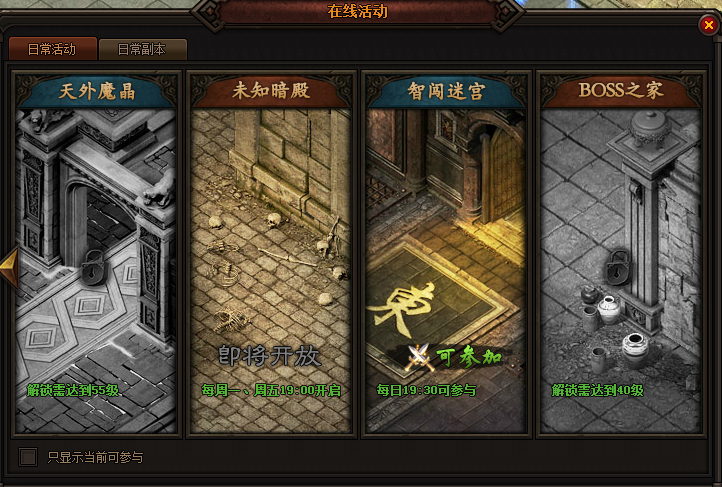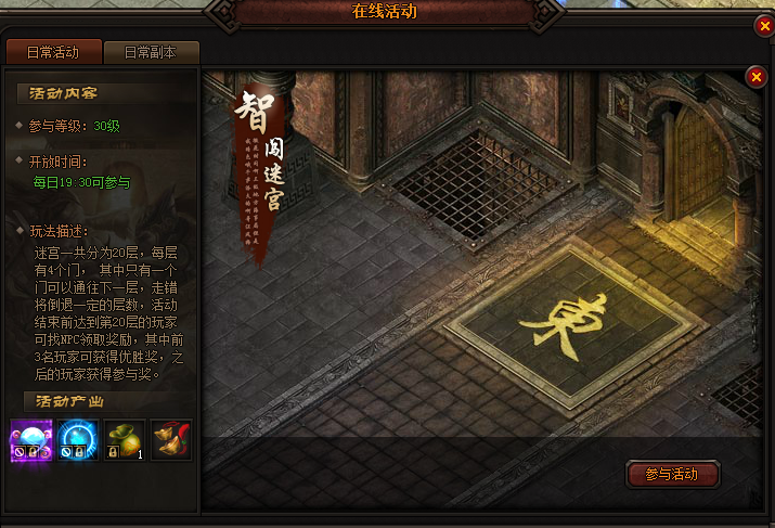 在智闯迷宫活动开始的时候,系统会自动出现参与提示面板。