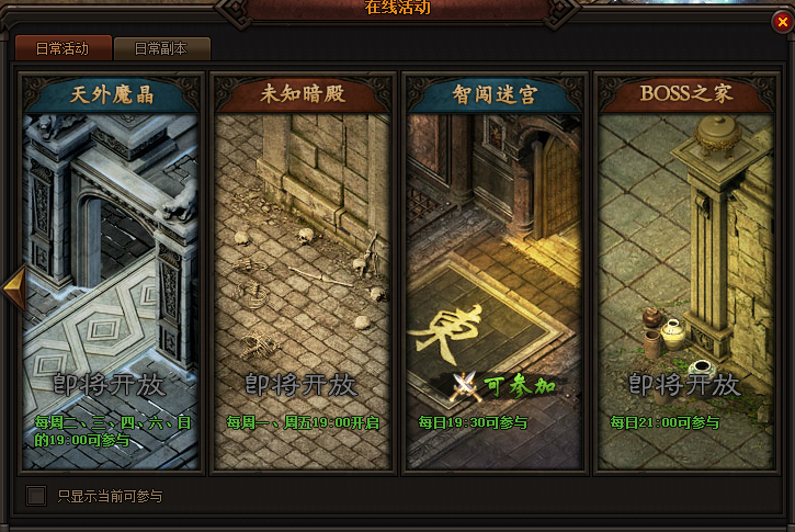 在未知暗殿活动期间,点击在线活动