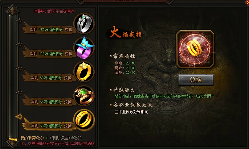 | 消费“50万消费积分” | 火焰戒指*1, |