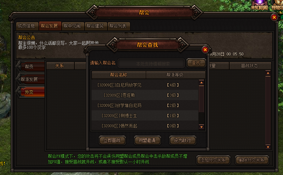 1. 帮主和副帮主可以对建筑进行升级操作: 2. 建筑提升后会进入升级冷却时间,所有帮会成员可以使用道具对建筑进行加速: 二、帮会宣战功能