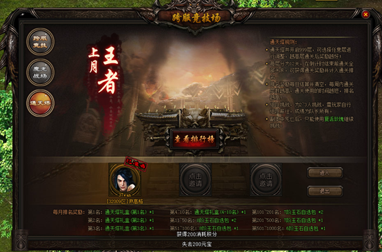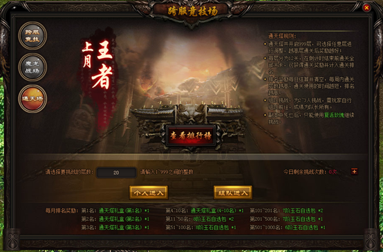 玩家可以自主选择任意一层进行挑战,但要注意,每个月的月末会对通天塔的成绩排名发放丰厚的奖励哦。